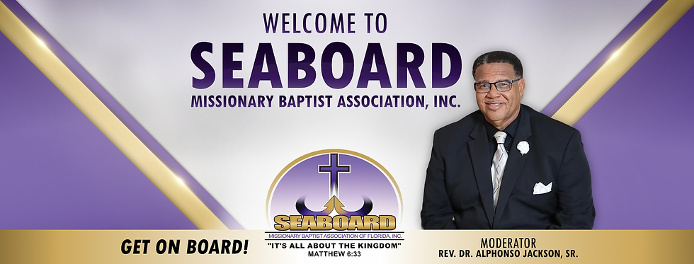 Greetings and Welcome to the Seaboard Missionary Baptist Association Inc. Our Mission is to Elevate the Savior, Equip the Saints and Evangelize the Sinners. We are affiliated with the Florida General Baptist Convention and the National Baptist Convention, USA. The annual session of the Seaboard Baptist Association convenes the first week in February each year beginning Monday night after the first Sunday. We welcome and encourage you to become a part of this great Kingdom Focused Association.